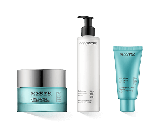 Das Konzept der Produktreihe Académie Hydraderm basiert auf drei Arten der Feuchtigkeitsversorgung: sofortige, langanhaltende und vorbeugende Feuchtigkeitsversorgung. Eine breit gefächerte Produktpalette bietet sehr unterschiedliche Formulierungen, die speziell auf die verschiedenen Bedürfnisse der Haut abgestimmt sind. So findet sich für jeden Hauttyp die passende Pflege.