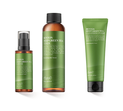 Die Benton Deep Green Tea-Kollektion steht ganz im Zeichen des grünen Tees. Seine wertvollen Extrakte aus verschiedenen Teilen der Pflanze, sowohl von den Blättern als auch dem Saatkomplex oder der Wurzel, stellen mindestens 50 Prozent jedes Produktes dieser Kollektion dar. Die hohe antioxidative Kraft sowie nährstoffreiche Zusammensetzung helfen vor allem öliger oder sensibler Haut, wieder ins Gleichgewicht zu finden. Die Kombination mit weiteren Pflanzenextrakten bietet eine gute Balance zwischen Feuchtigkeitspflege und Anti-Aging, beruhigenden sowie ausgleichenden Stoffen und stärkenden Extrakten, die helfen, Umweltbelastungen besser abzuwehren. Daher eignet sich die Pflege insbesondere auch für Haut, die zu Rötungen, Entzündungen oder Unreinheiten neigt.
