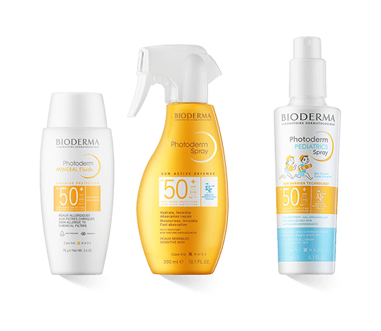 Der Photoderm Max SPF 50+ Sun Mist ist ein Schutzspray für sehr empfindliche Haut. Es bietet hohen Schutz, hat aber trotzdem ein transparentes Finish. Die Photoderm Max SPF 50+ Milk hat eine klassische Sonnenmilch-Textur. Wer einen feinen Sprühnebel bevorzugt, kann das Photoderm Max SPF 50+ Spray wählen. Gezielt aufzutragen und leicht zu transportieren ist der Photoderm Max SPF 50 Large Stick. Dieser Pflegestift lässt sich einfach herausdrehen und kann so aufgetragen werden. Der Photoderm Photerpès SPF 50+ Lip Stick schützt eine der sensibelsten Hautpartien, nämlich die Lippen. Seine Formel mit Bienen- und Carnaubawachs schützt zudem auch vor der Ausbildung von Herpes.