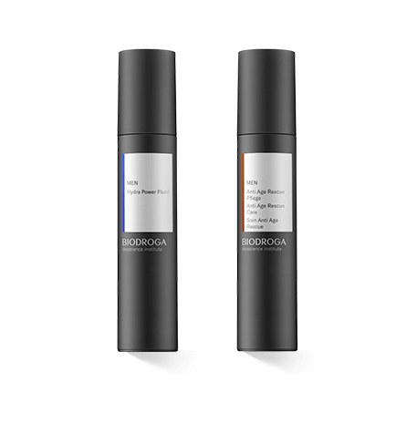 Das Biodroga Bioscience Institute Men Hydra Power Fluid ist eine flüssige Creme, die die Haut nach der Rasur beruhigt, sie durchfeuchtet und ihr Energie schenkt. Die Poren werden verfeinert, der Teint mattiert. Durch eine stärkere Hautbarriere ist die Haut besser vor Schäden durch Umwelteinflüsse geschützt. Das Fluid ist besonders für trockene Haut geeignet. Die Bioscience Institute Men Anti-Age Rescue Pflege nutzt biotechnologische Inhaltsstoffe, um die Haut zu vitalisieren, zu glätten und zu straffen. Die Creme verbessert die Kollagensynthese, dadurch wird die Haut gestrafft und fester. Das Kollagen bleibt länger in der Haut erhalten, in Verbindung mit zusätzlicher Feuchtigkeit wird die Haut glatter. Die Haut erhält neue Energie, wirkt frisch und regeneriert sich leichter. Die Creme pflegt vor allem reife Männerhaut.