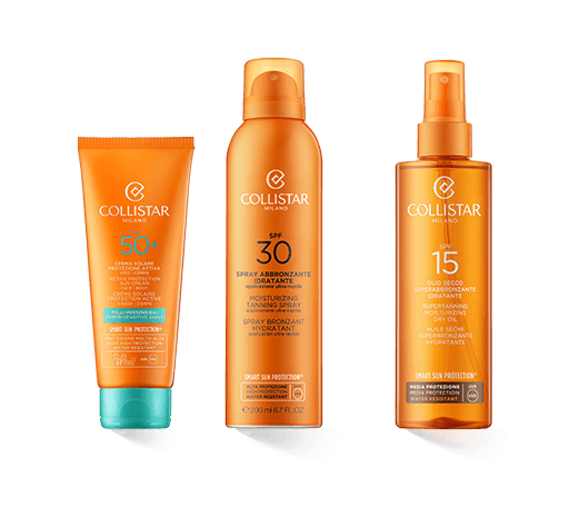Wer einen unkomplizierten, hochwirksamen und pflegenden Sonnenschutz sucht, ist mit der Linie Collistar Smart Sun Protection bestens beraten. Die Cremes und Sprays bieten zuverlässigen Schutz vor schädlichen UV-Strahlen und unterstützen gleichzeitig die wohltuende Wirkung des Sonnenlichts auf den Körper. Die ideale Wahl für eine gesunde, gleichmäßige Bräune.