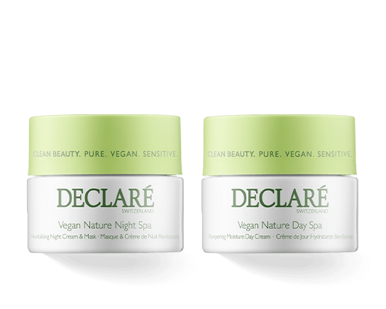 Ergänzend zur Tagespflege bietet die vegane Nachtpflege Declaré Vegan Nature Night Spa eine schnelle Pflege vor dem Schlafengehen. Zusätzlich kann sie auch als wohltuende Nachtpflege-Maske angewandt werden. So wird umweltgestresster, empfindlicher Haut wohltuende Erholung und Entspannung über Nacht geboten. Der pflegende Komplex aus Malve, Melisse, Pfefferminze, Schlüsselblume und Moos ist mit pflegendem Leindotteröl angereichert. Schweizer Quellwasser, Hyaluronsäure, Vitamin E, Sheabutter und weitere pflegende Öle verwöhnen die Haut, sodass sie sich über Nacht optimal regenerieren kann. Die Nachtpflege spendet tiefenwirksame Feuchtigkeit und zaubert ein ausgeglichenes, ebenmäßiges Hautbild.