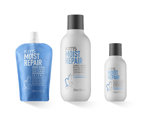 Die kms MoistRepair Kollektion reinigt, pflegt, stärkt und repariert trockenes, strapaziertes und auch brüchiges Haar. Es ist der erste Schritt im dreistufigen kms System, der das Haar optimal auf das nachfolgende Styling vorbereitet. Als Herzstück des Wirkkomplexes dient der AHA Structure Complex. Die einzelnen Inhaltsstoffe sind perfekt aufeinander abgestimmt und helfen, die natürliche Schutzschicht der Haare zu reparieren und zu kräftigen. Sie wirken sowohl im Inneren des Haars als auch an der Oberfläche. So fühlt sich das Haar gut an und sieht noch besser aus.