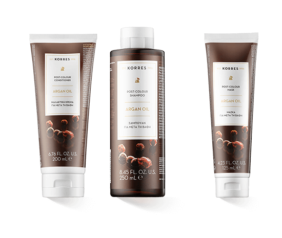 Um zu verstehen, was Arganöl so teuer und besonders macht, muss man wissen, dass die Argannuss nur an einem einzigen Ort auf der Welt wächst. Das ist der Südwesten von Marokko, wo die Arganbäume tatsächlich von bewaffneten Polizisten bewacht werden und unter dem Schutz des Weltkulturerbes stehen. Doch nicht nur die Seltenheit des Arganöls macht es so besonders, sondern auch seine nachgewiesene, pflegende und heilende Wirkung auf Haut und Haare. Trockenes, sprödes, gestresstes und zu Spliss neigendes Haar wird durch Arganöl wieder geschmeidig, herrlich kämmbar und seidig glatt. Am besten nutzt man dazu die Korres Argan Oil Post-Colour Reihe. Denn sie reinigt und pflegt die Haare nicht nur, sie spendet Haar und Kopfhaut auch viel Feuchtigkeit und kann sogar der trockenen und juckenden Kopfhaut entgegenwirken.
