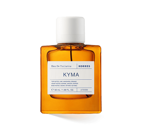 Korres Kyma ist ein Eau de Toilette für Herren aus dem Jahr 2022. Sein zitrischer, frischer Duft entführt auf das Meer, in die Natur. Der Duft ist zugleich belebend und entspannend. In der Kopfnote wecken Limette, Mandarine und Orange die Sinne mit ihren zitrischen und fruchtigen Akkorden. Sie verbreiten sofort eine optimistische Stimmung. Im Herzen vereinen sich maritime und aquatische Noten. Dadurch erhält der Duft seinen Charakter, der nach Abenteuer und Meer riecht. Pfeffer verstärkt diese Eigenschaft mit seinen scharfen, würzigen Akkorden. So erhält der Meeresgeruch Tiefe und Feuer. Gegen Ende wird der Duft ruhiger. Zunächst gesellen sich zum aquatischen Meeresduft die Noten von Zedernholz hinzu. So entsteht der Eindruck eines Segeltörns in einem edlen Boot bei aufgewühlter See. Vetiver schenkt holzige, balsamische und leicht rauchige Akkorde. Sie verleihen Kyma eine ausgeprägte Männlichkeit. Würzig und sinnlich ist der Duft von Muskat am Ende des Eau de Toilettes, der die Rückkehr in den sicheren Hafen symbolisiert.