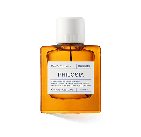 Korres Philosia ist ein Eau de Toilette aus dem Jahr 2024. Der grüne, würzige Unisexduft verströmt eine anregende, warme Atmosphäre wie bei einem Waldspaziergang im späten Frühling. Die Sonne scheint durch grüne Blätter, die ihre aromatischen Noten in die warme Luft abgeben. Bergamotte, Orange und Mandarine eröffnen den Duft mit fruchtigen, erfrischenden Noten. Schnell entwickelt sich der eigentliche Waldduft mit Kiefer, Tannenbalsam und Eukalyptus. In der Herznote sorgt Sternanis für Würze. Gegen Ende dominieren cremige Moschusnoten. Zedernholz, Guajakholz und Patchouli halten den Duft im grün-holzigen Bereich. Korres Philosia ist ein Eau de Toilette, das jederzeit eine entspannende, aber auch anregende Stimmung verbreitet, wie ein Spaziergang im Wald. Sillage und Haltbarkeit liegen im mittleren Bereich.