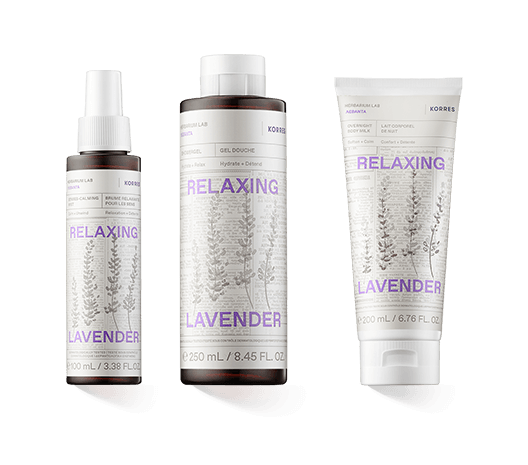 Der moderne Alltag ist geprägt von Stress. Zeitdruck, Probleme und Konflikte bestimmen nicht nur die Wachstunden. Sie stören auch den Schlaf. Verspannungen, Schlafstörungen und Antriebslosigkeit sind die typischen Folgen. Korres Relaxing Lavender ist eine wirksame Hilfe für ein gesundes Schlafritual, das Entspannung und Hautpflege miteinander verbindet. Mit Lavendel als Basis sind die Produkte vom Duschgel bis zum Senses-Calming Mist so konzipiert, dass sie durch ihren zarten und zugleich intensiven Duft entspannen, die innere Ruhe fördern und den Stress des Alltags hinter sich lassen.