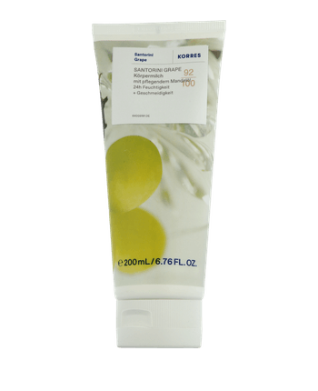 Die Korres Santorini Grape Body Milk verwöhnt die Haut mit einer leichten, seidigen Textur, die schnell einzieht und lang anhaltende Feuchtigkeit spendet. Die mit antioxidativ wirkendem Santorini-Traubenextrakt angereicherte Formel unterstützt die Haut dabei, ihre natürliche Geschmeidigkeit und Strahlkraft zu bewahren. Pflegende Inhaltsstoffe nähren die Haut intensiv und hinterlassen ein glattes, zartes Hautgefühl. Die Körpermilch eignet sich ideal für die tägliche Pflege und sorgt für sichtbar weichere, gepflegte Haut mit einem frischen, dezenten Duft.