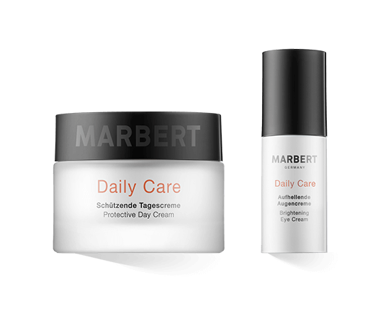 Die Kreation einer streichelzarten Haut war noch nie so einfach: Die Marbert Daily Care schenkt der Haut alles, was sie benötigt, um prall und vital zu sein. Sie spendet der Haut intensive Feuchtigkeit, schützt sie vor schädigenden Umwelteinflüssen und beruhigt und regeneriert ihre stressbedingten Reizungen. Die beliebte Pflegeserie für jeden Tag besteht aus einer Tagescreme mit UV-Schutz für die trockene und die normale Haut sowie einer Tages- und Nachtcreme, ebenfalls für beide Hauttypen. Für die Augenpflege bietet Marbert die Aufhellende Augencreme und einen Augenpflege-Roll-On an. Gepflegte Hände kreiert die Perfect Hands Handcreme der erweiterten Marbert Daily Care.