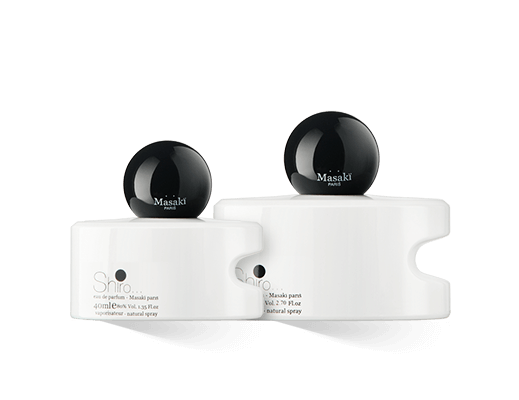 Der Flakon von Masakï Matsushïma Shiro erstrahlt in reinem Weiß. Nur die Verschlusskappe und der Schriftzug sind schwarz. So entsteht ein starker Kontrast, der die Leuchtkraft des Flakons noch unterstreicht. Ebenso hell strahlen die Blüten des Duftes. Die Form des Flakons erinnert an die minimalistische und doch extravagante Mode von Masakï Matsushïma. Eine halbrunde Vertiefung auf der rechten Seite des breiten Flakons lenkt den Blick auf die Verschlusskappe. Diese ist rund, genau wie der große Punkt auf dem I von Shiro. So wird der Blick geschickt in dieses Dreieck gelenkt. Es entsteht eine Ruhe und Regelmäßigkeit, die durch die asymmetrische Form überrascht.