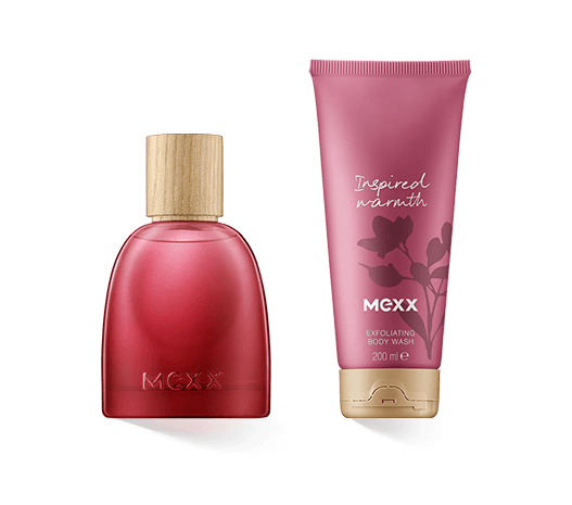 Mexx Inspired Warmth for Her ist eine Duftserie für Frauen, die ein Gefühl von Geborgenheit und Wärme vermittelt. Sie besteht aus Eau de Parfum Spray, Body Oil, Body Lotion und Body Butter, die alle den gleichen fruchtig-blumigen Duft haben. Das Eau de Parfum beginnt mit einer fruchtigen Kopfnote aus roten Früchten und Mandarine, Rhabarber sorgt für eine leichte Säure, die belebend wirkt. In der Herznote dominiert der starke, süße Duft von Maiglöckchen. Jasmin ergänzt den blumigen Duft, Zedernholz sorgt für entspannende Eleganz. Die Basisnote aus Moschus, Vanille und Benzoe drückt eine umhüllende Wärme aus. Hier verbreitet das Parfum eine sanfte Cremigkeit und Süße. Haltbarkeit und Sillage liegen im mittleren Bereich, so dass der Duft auch an warmen Tagen nicht aufdringlich oder zu süß wirkt.
