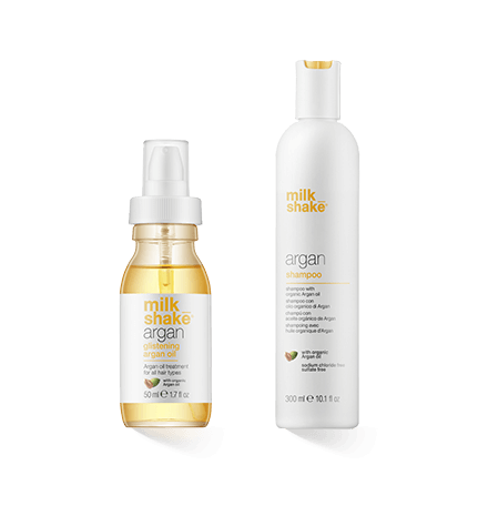 Milk_Shake Argan bringt stumpfes Haar zum Glänzen, bändigt widerspenstiges Haar und beugt Frizz vor. Die einfach anzuwendenden Produkte reinigen das Haar und machen es geschmeidig. So lässt sich das Haar perfekt stylen und glänzt gesund. Die Produkte sind für alle Haartypen geeignet, außer für fettiges Haar, wobei das Haaröl und die Haarmaske auch die Spitzen von fettigem Haar pflegen. Schon nach der ersten Anwendung ist eine deutliche Verbesserung des Haarzustandes sichtbar.