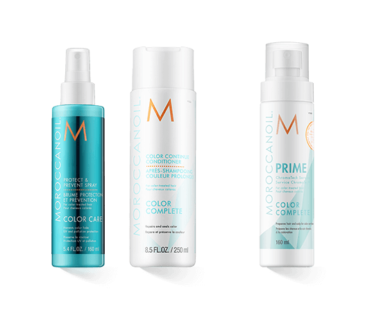 Im ersten Schritt das Moroccanoil Color Complete Continue Shampoo angewendet. Im Anschluss folgen hochwirksame Pflegeprodukte wie der Continue Conditioner oder die Chroma Tech Service Maske. Der Moroccanoil Color Complete Continue Conditioner bedient sich der Colorlink-Technologie. Die Farbe wird dabei bestmöglich auf den colorierten Haaren fixiert und ihre Lebensdauer verlängert. Die Chroma Tech Service Maske sorgt für eine umfassende Reparatur der geschädigten Haarstruktur. Durch das Versiegeln von Schäden wird eine verbesserte Haltbarkeit der Haarfarbe möglich gemacht.