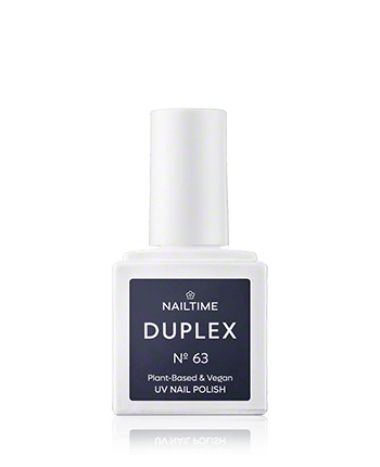 Der Nailtime Duplex UV Nail Polish 63 Blue Jeans ist ein dunkles Mitternachtsblau, das elegant wirkt, aber auch zu lässigen Jeanslooks gut passt. Es ist eine Alternative zum typischen schwarzen Nagellack. Der UV-Lack mit pflanzlichen Rohstoffen hat einen intensiven Glanz und wird mit der Lampe in nur einer Minute ausgehärtet.