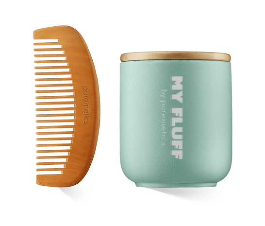 Auch für Haarpflege und Styling bietet die puremetics Accessoire-Kollektion nachhaltige Alternativen. Ein Kamm aus Kirschholz entwirrt die Haare und massiert die Kopfhaut, während die Bambus-Sisal-Bürste das Haar schonend glättet und für schönen Glanz sorgt. Braucht das Haar zwischen den Haarwäschen eine kleine Auffrischung, lässt sich dies mit dem puremetics Trockenshampoo und dem dazugehörigen Streuer aus Blech ganz einfach und umweltfreundlich erledigen - ganz ohne Sprühflasche und schädliche Treibgase.