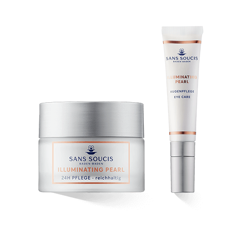 Die Sans Soucis Illuminating Pearl Pflege fördert einen ebenmäßigen und strahlenden Teint, damit dieser seine jugendliche Strahlkraft länger bewahren kann. Mit Proteinen aus Perlen soll sowohl eine zuverlässige Anti-Aging-Wirkung gegen Linien und Fältchen, als auch ein schöner Glow erreicht werden. Der Wirkstoff regt die hauteigene Produktion von Elastin und Kollagen an. Auf diese Weise kann die Elastizität der Haut erhalten werden. Zugleich verspricht die Pflege einen positiven Effekt bei übermäßiger Pigmentierung. Diese kann die Haut schnell unruhig und älter wirken lassen.