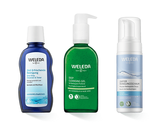 Die Produkte aus der Serie Weleda Reinigung reinigen und pflegen die Haut in einem Schritt. Gesichtswasser, Reinigungsschaum und Reinigungsmilch sind dabei sanft zur Haut, verfügen über eine angenehme Textur und sind dezent parfümiert.